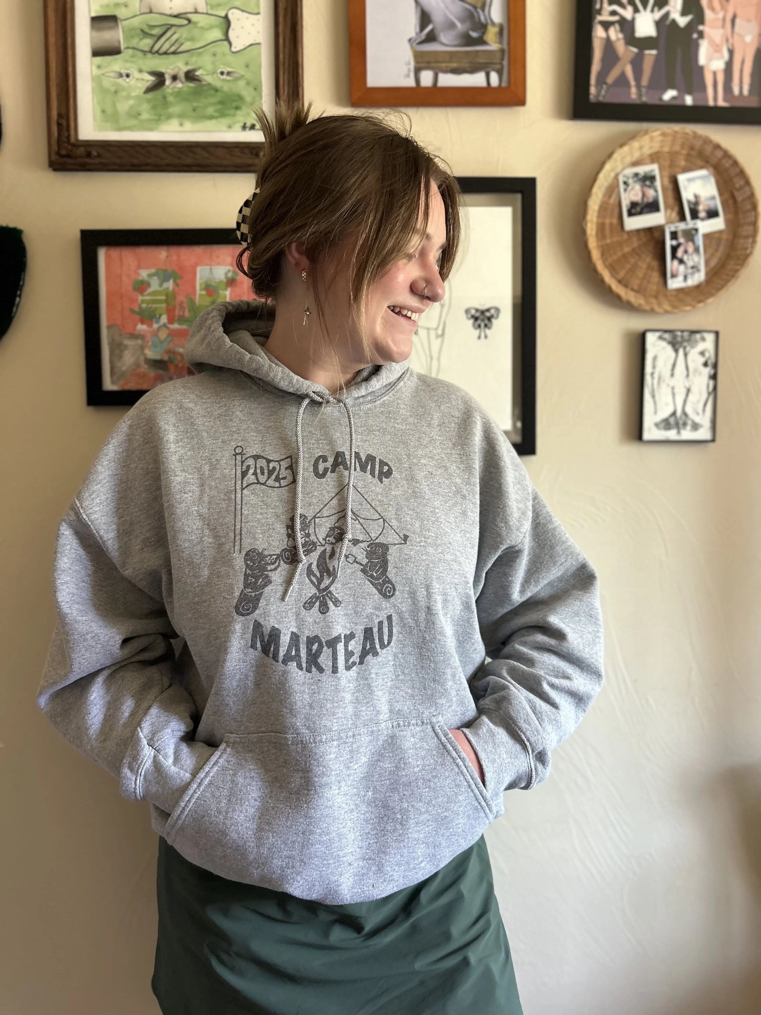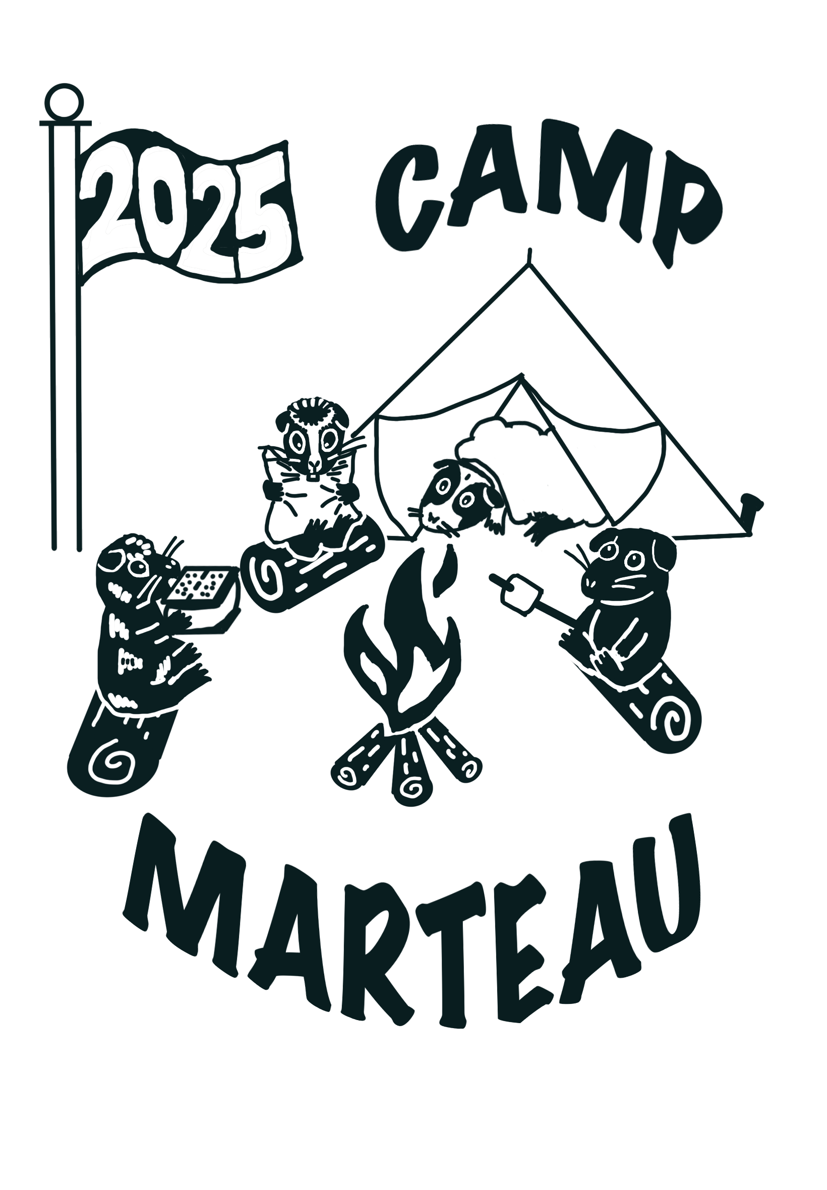 Here is my design, a cartoon of my four guinea pigs around a camp fire. The pigs are always a part of my summer camp shirts, and this year, my husband created the design on Procreate!