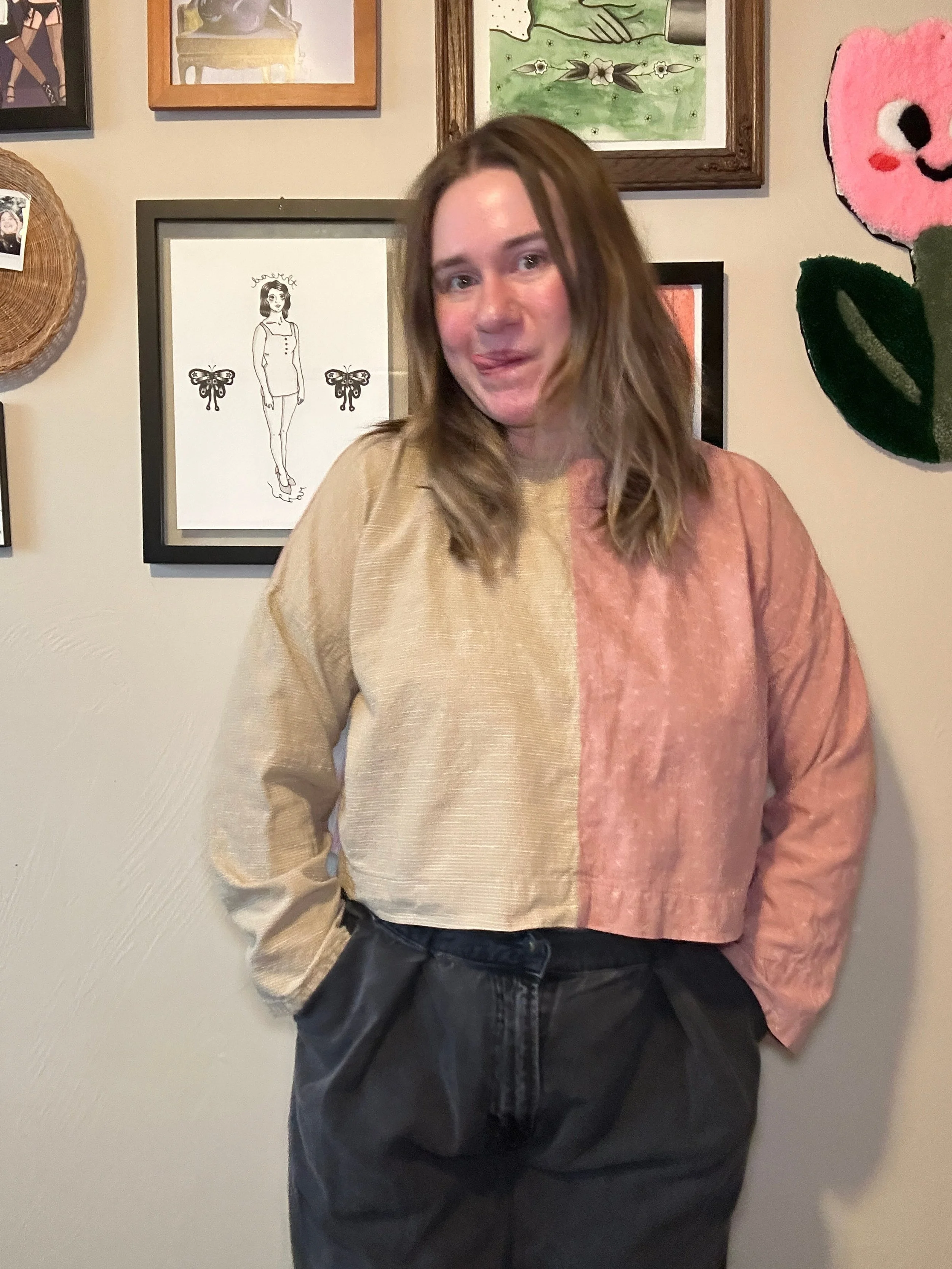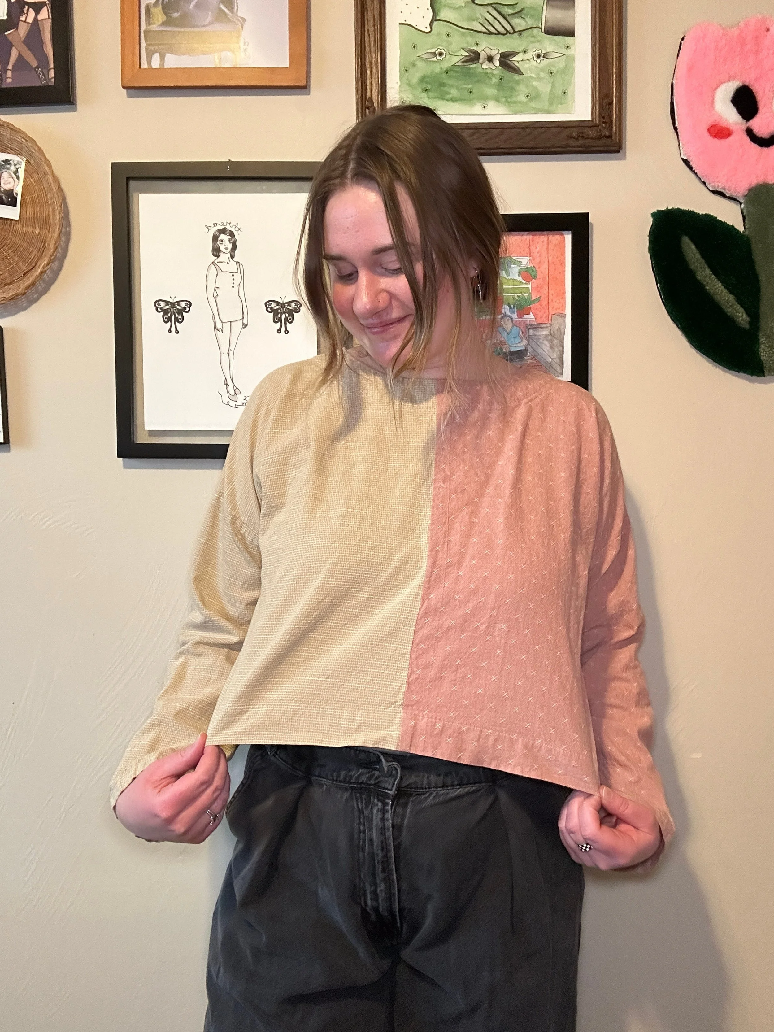 I lengthened the sleeve by 4” so that the shirt is a long sleeve rather than a 3/4 sleeve. In hindsight, I could have lengthened it an additional 0.5” — 4.5” in total.